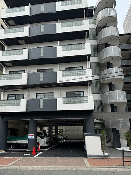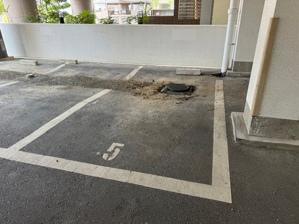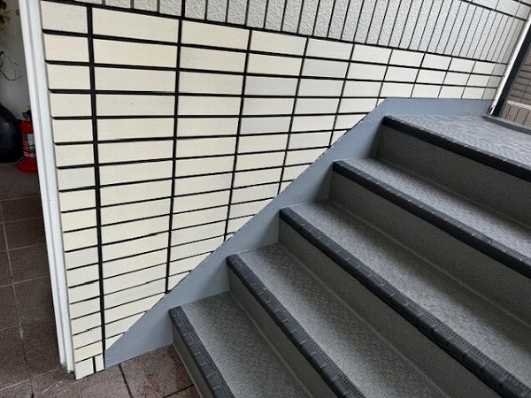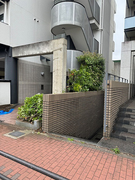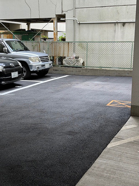 主な工事内容は、屋上防水、階段シート貼り、駐車場の舗装改修、エントランス土間タイルの張り替え、集合ポスト改修、外壁の爆裂部補修および上塗装、エントランス周りの植栽入れ替えです。