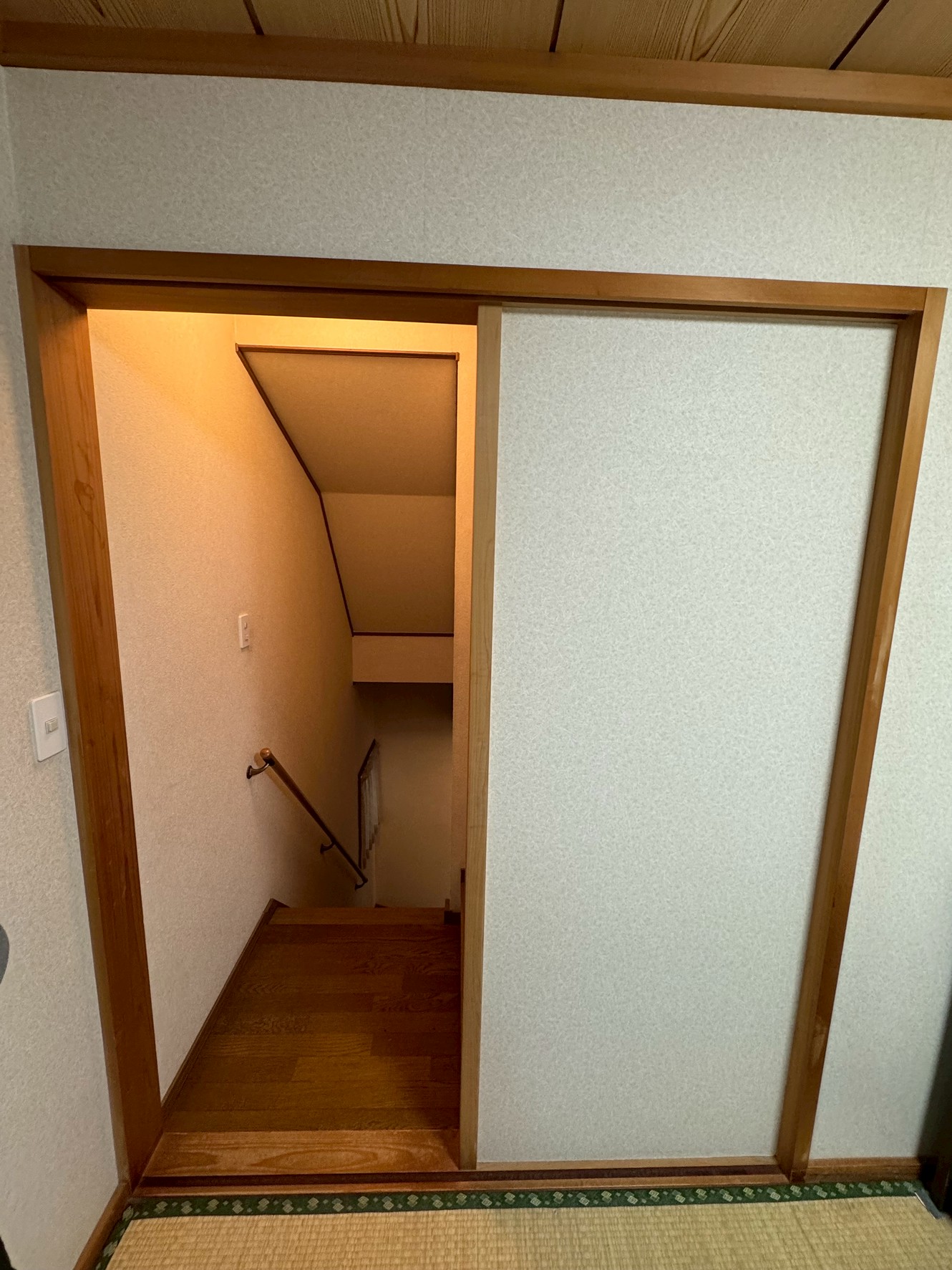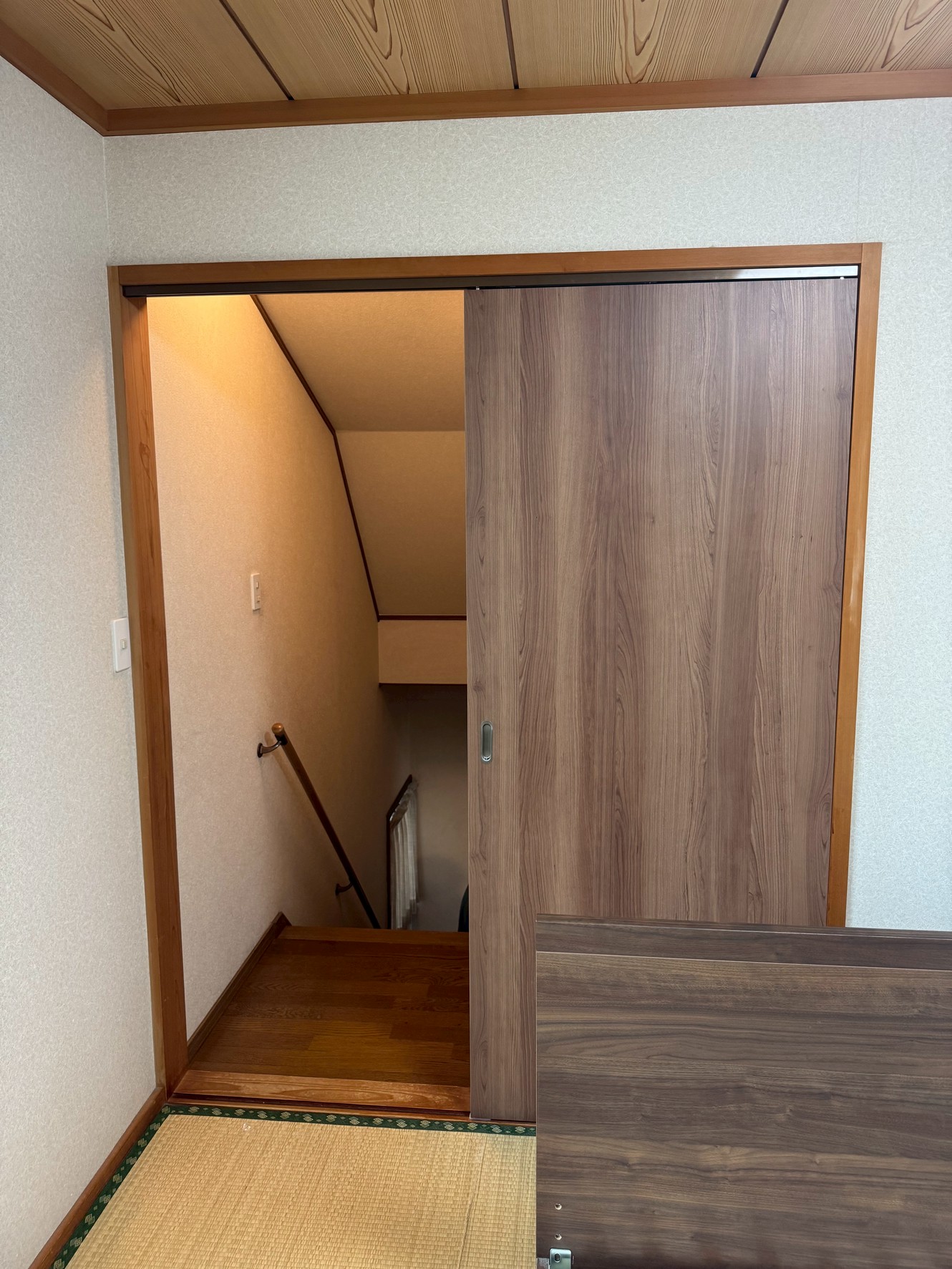 階段入口の襖を、上吊り式の引戸に造り替えました。