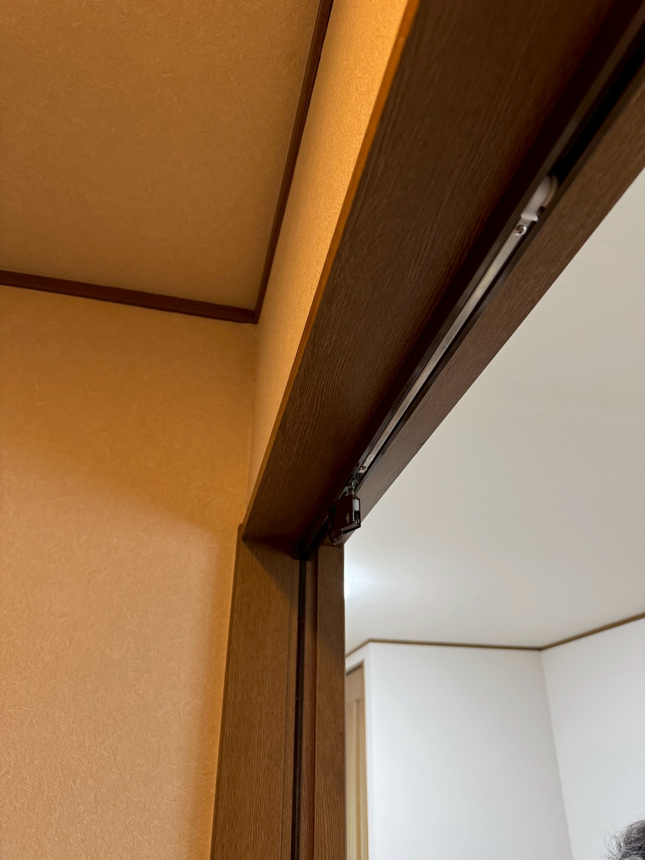 上吊りレールを鴨居部分に新設し、床面にレールのない構造に変更。開閉が軽くスムーズになり、足元のつまずきの心配もなくなりました。